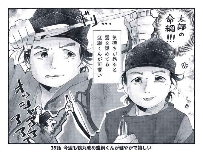 鶴丸くんが盛綱くんに進化したし今日も今日とて可愛かった。癒し。 #鎌倉殿の13人 #殿絵 #鎌倉絵