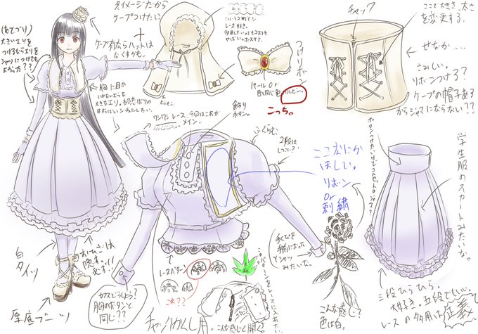 #大河山麻々夜降臨記念祭 #mamayo_ART 活動1周年の当日だからね、改めてめでたい日だ😊 ってな訳で、おまけ! 今回描いたロリィタ服の設計図、メモ書きの軽い清書 文字は殴り書きのまま書き直したけど。 今後のますますのご活躍を祈りまして 大河山麻々夜さんのアカウント→@ momotasoro twitter.com/4avalon4/statu…
