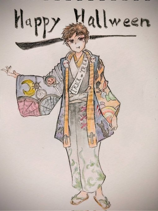 1 25 ハロウィン風の和服考えてみました。服のデザイン考えるの楽しいけど時間かかる、、、 #オリジナルキャラクター #オリキャラ #アナログイラスト #イラスト #ハロウィンイラスト 21/10/25 21:31
