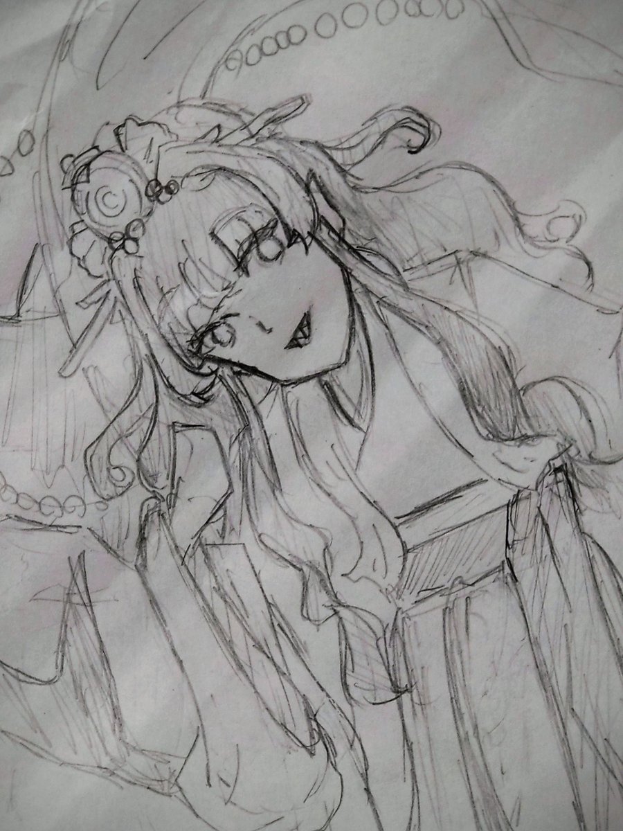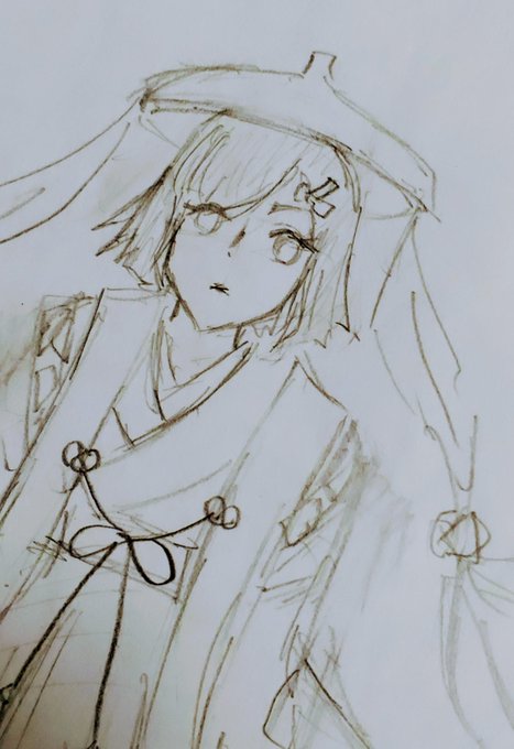 0 6 落描き。モデルは稲荷大明神である宇迦之御魂。#アナログイラスト #落描き #日本神話 #和服 #オリジナルキャラクター #オリキャラ 21/11/26 00:41