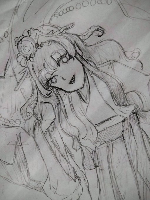 落書きです。日本神話の豊玉姫という海の神様をモデルにしました。 #落書き #アナログイラスト #オリキャラ #オリジナルキャラクター