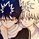 5年前に描いてたイラスト集(ノート) が発見して中の1枚目を見たら 幽遊白書の飛影と HUNTER×HUNTERのキルアの 絡んでる絵だった^ ^w #HunterXHunter #幽遊白書 #キルア #飛影 #イラスト #漫画