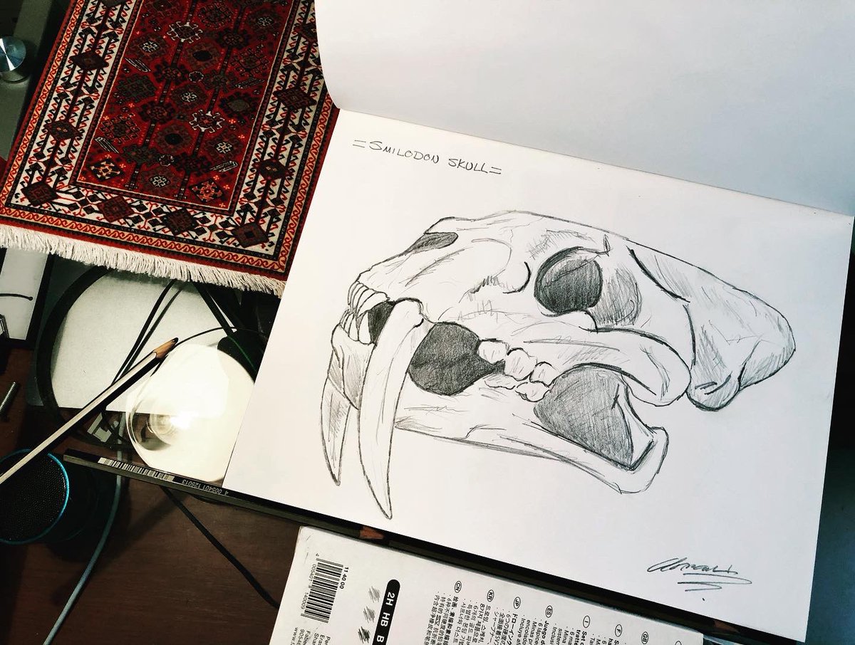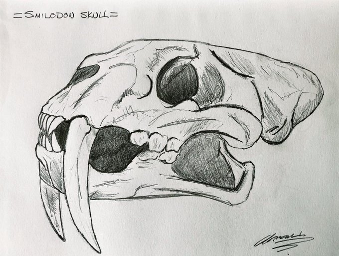 Un poco de paleoarte, craneo de Smilodon a lápiz. #paleoart