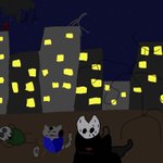 深夜のいつものビル近すぎ公園の様子⁇ 化け猫にお酒を飲まされそうになる何か #絵描きさんと繋がりたい #イラスト好きな人と繋がりたい #イラスト好きさんと繋がりたい #イラスト好きと繋がりたい #落書き