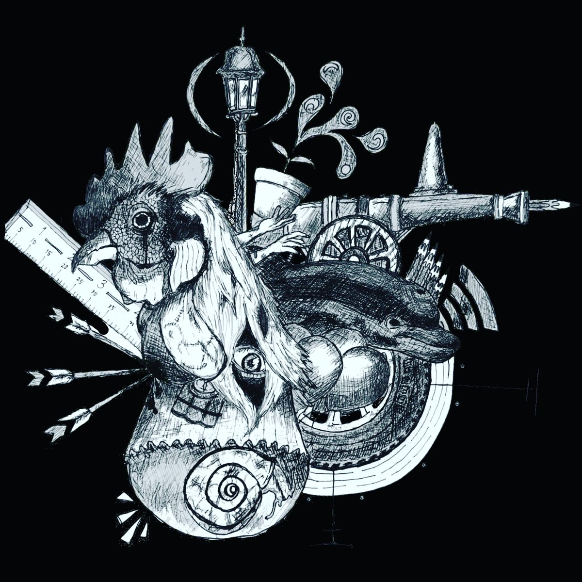 0から始めるペン画練習 1日目 11/23現在 パッと思いついた16のアイテムで 心象風景的なイラスト描いてみました。 16 Item Mental Scenery #イラスト #イラスト練習 #絵描きさんと繋がりたい