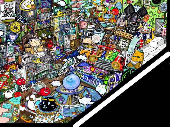 #春の創作クラスタフォロー祭り #絵描きさんと繋がりたい 創作 ダールファンタジー パート1 ぬいぐるみの旅立ち オーバテクノロジーの町に佇む なんでも売れる故に特殊な物置き場と化したリサイクルショップ 世界踏破度0.1%