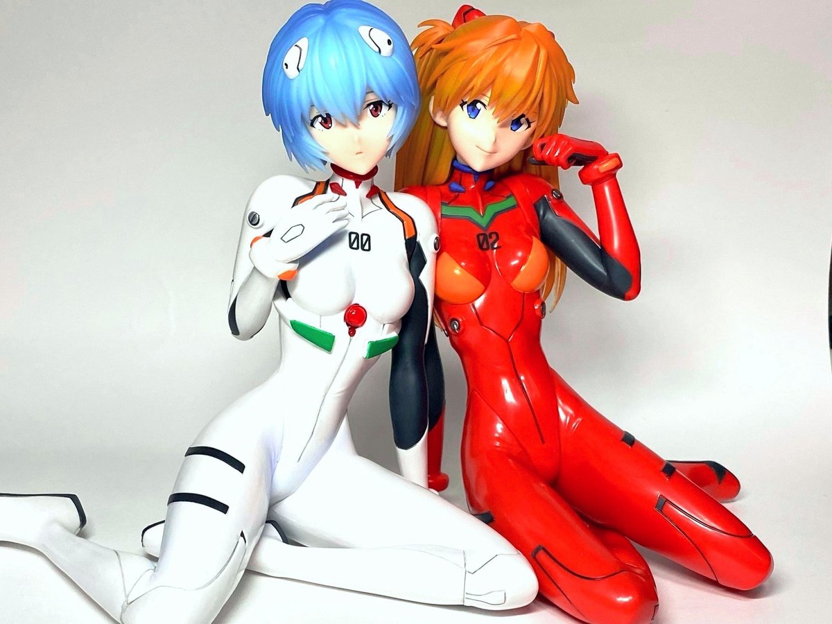 綾波レイ 式波・アスカ・ラングレー 一番くじEVANGELION 1/4 座った状態で20cm近くあり迫力がありますね!髪の毛束の造形が細かく良いです 顔の造形もかなり良く特に綾波は似ていると思います!! 塗装はくじレベルですがサイズや造形の良さだけでゲットする価値ありです! #美しきフィギュア達の宴