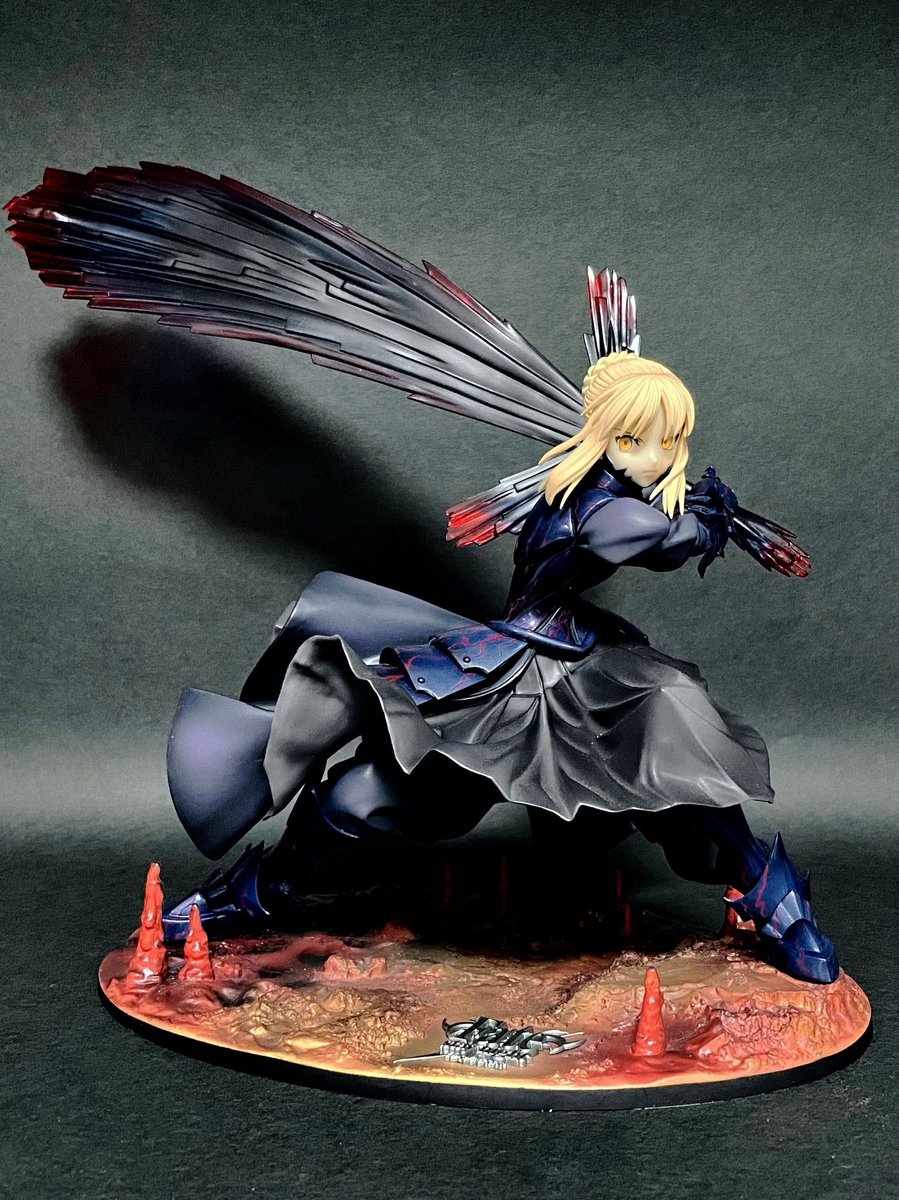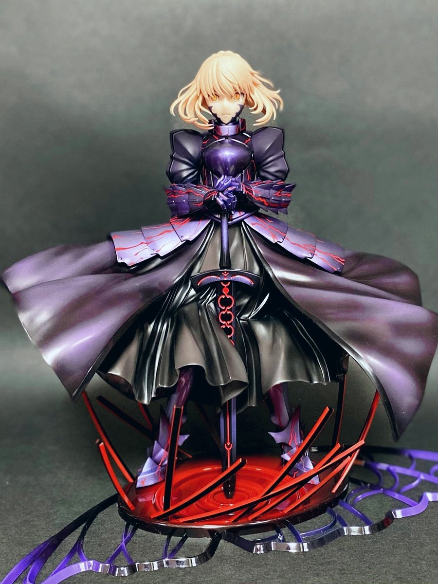 セイバーオルタ アルター 1/7 顔が完璧なのはもちろんながら たなびくドレスの造形が凄まじいです!! エクスカリバーと台座の赤色で全体が引き締まって美しくまとまってます! #美しきフィギュア達の宴