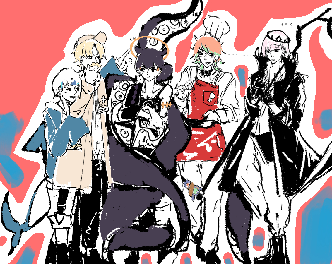 Bottom left being a bottom left looking at bottom left (definitely not the soft cream 👀) #TAKAMORI #ArtsOfAshes #callillust