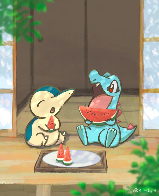 ワニノコとヒノアラシ 夏休み🍉 #ポケモンイラスト #pokemonfanart