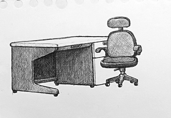 オフィスデスクと椅子(*´ω`*) #ボールペン画 #落書き #イラスト #オフィスデスク #椅子 #事務机
