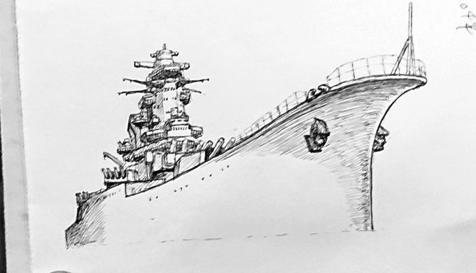 フランスの新戦艦(*´ω`*) #ボールペン画 #落書き #イラスト #フランス #戦艦