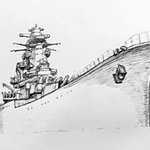 長大な船体の高速艦っぽい弩級戦艦(*´ω`*) 舷側に主砲塔を配置したデザインは、巨大で重たい主砲をたくさん積みつつコンパクトにまとめる工夫です。 #ボールペン画 #落書き #イラスト #弩級戦艦 #戦艦