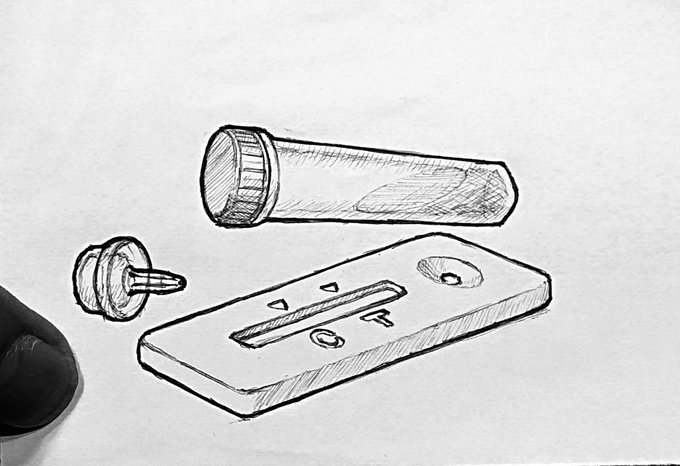 検査キット(*´ω`*) ここ2~3年で目にした人も多いと思う。 #ボールペン画 #落書き #イラスト #検査キット
