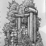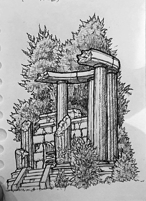 休憩所の遺跡?(*´ω`*) #ボールペン画 #落書き #イラスト #休憩所 #遺跡