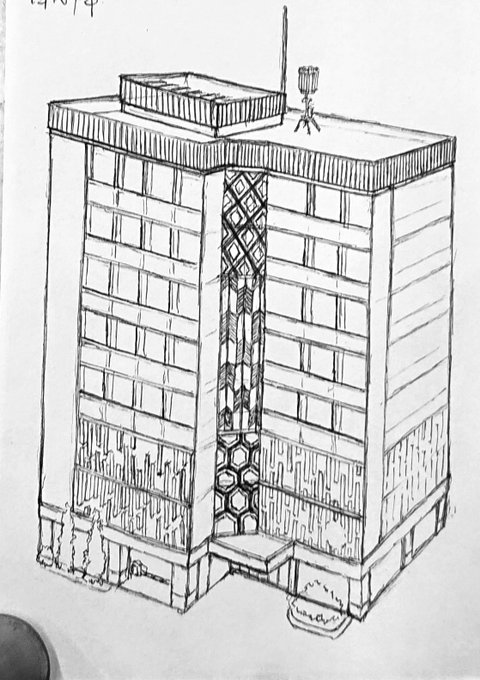 和柄のビル(*´ω`*) 最近のホテルとかにありそうなデザイン。 #ボールペン画 #落書き #イラスト #和柄 #ビル #ホテル