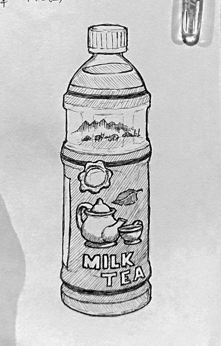 ペットボトルミルクティー(*´ω`*) #ボールペン画 #落書き #イラスト #ペットボトル #ミルクティー