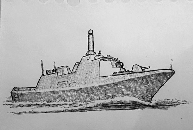 0 1 ステルスフリゲート(*´ω`*) #ボールペン画 #落書き #イラスト #ステルス #フリゲート 23/04/05 11:59
