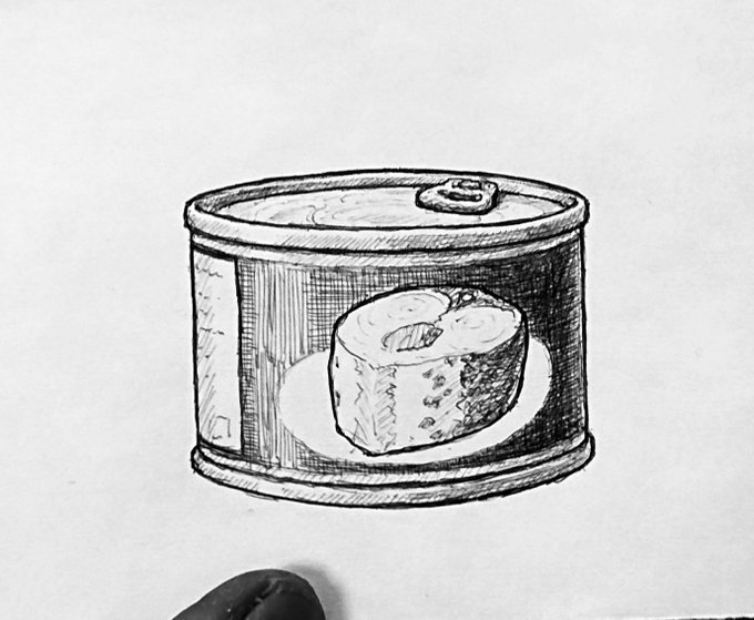 0 4 魚の水煮の缶詰め(*´ω`*) #ボールペン画 #落書き #イラスト #魚 #水煮 #缶詰め 23/03/27 22:39