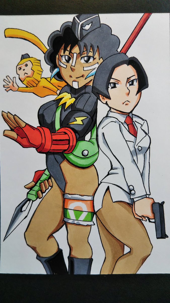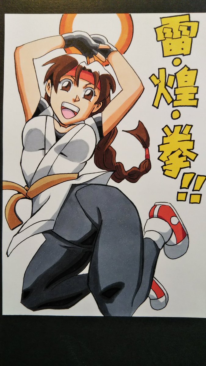 #格ゲーキャラ描こうぜ 8月17日が誕生日のかた おめでとう! #ハイエナ(KOFマキシムインパクト)悪の組織の情報通的存在。主が倒され、失った豪華な生活を取り戻すため、選手として出場。 ・八幡 葵(やはたあおい。月華の剣士)#一条あかり の友達。映像資料無しにつき想像描き。趣味は狸とにらめっこ。