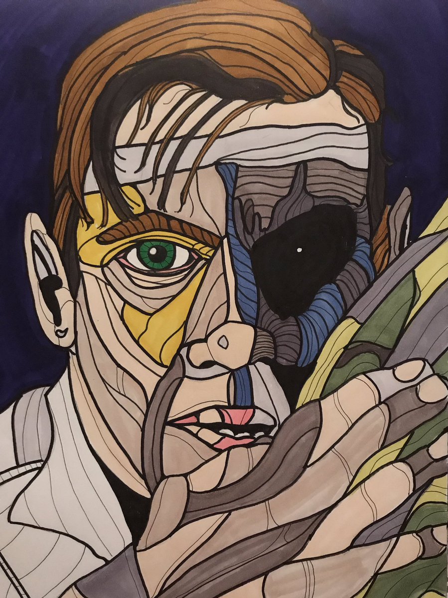 Inktober day 16: Nubbins “The Hitchhiker” Sawyer from The Texas Chainsaw Massacre. #inktober2019 #nubbinssawyer #texaschainsawmassacre #tobehooper #edwinneal