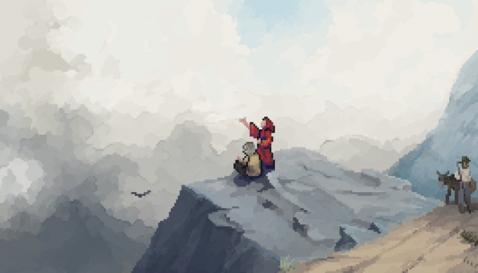 I really want to thank @ThKasparrr for his amazing Magic Pencil! Can't imagine how much time it saved me ☁️ Ivan Aivazovsky: 'Dante shows the artist in the unusual clouds' #pixelart #ドット絵