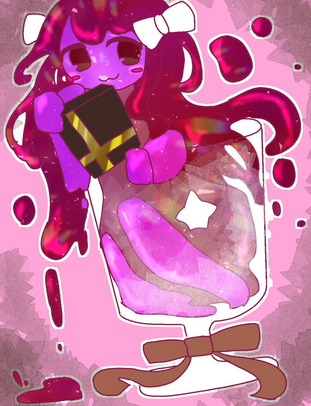#ゲーム制作者版お絵描き60分1本勝負 お題「バレンタイン」58分 スライリウムよりナルシストちゃん! 甘いチョコレートと一緒にスライムワインはいかがでしょう? #絵をかくましかく #スライリウム