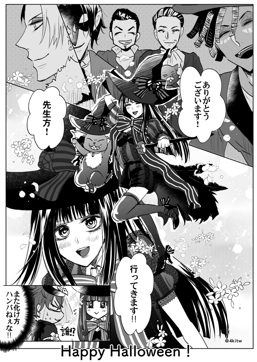 99 1144 クル監♀(顔あり/恋仲)とハロウィンの職員室 職員室のアイドル🌸 ⚗️先生に可愛くしてもらうネタなら何度でも描きたい…‼︎🎃✨ #twstプラス #twst_NL 22/10/31 08:35