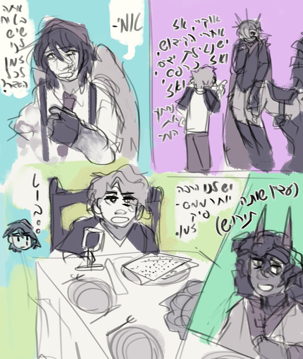 קומיקס קצר לפסח... איך שאני מדמיין את ארוחת ליל הסדר בשרת. אולי אצייר עוד מזה, כי אני מדמיין שכל הדמויות יהיו באותו ליל סדר, אז יש הרבה יותר אופציות. #erynfanart #tommyinnitfanart #awesamdudefanart #quackityfanart