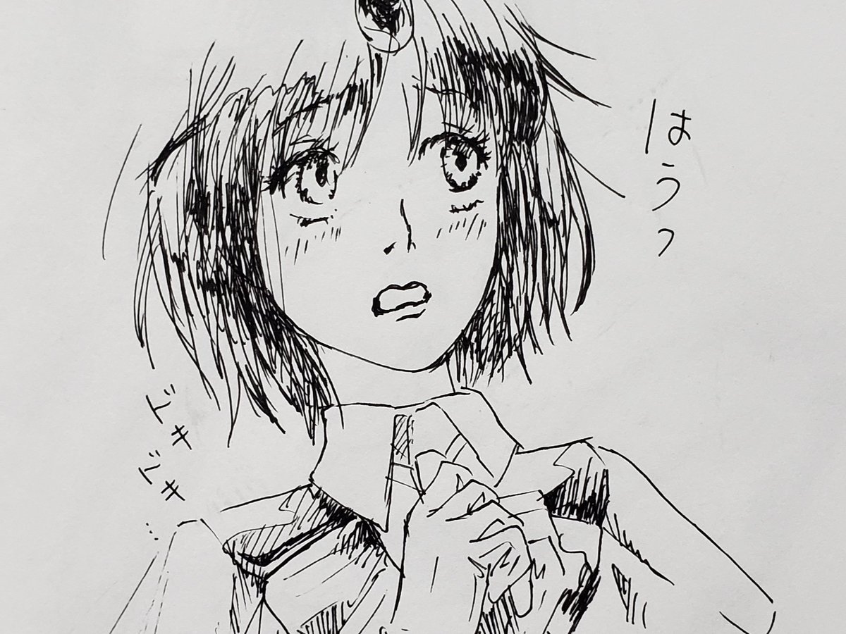 ボールペン一発描き2分 こりゃ腕が長すぎる反省 やはり落書きにも下書き必要 さあさあ、GW後半へダイブ