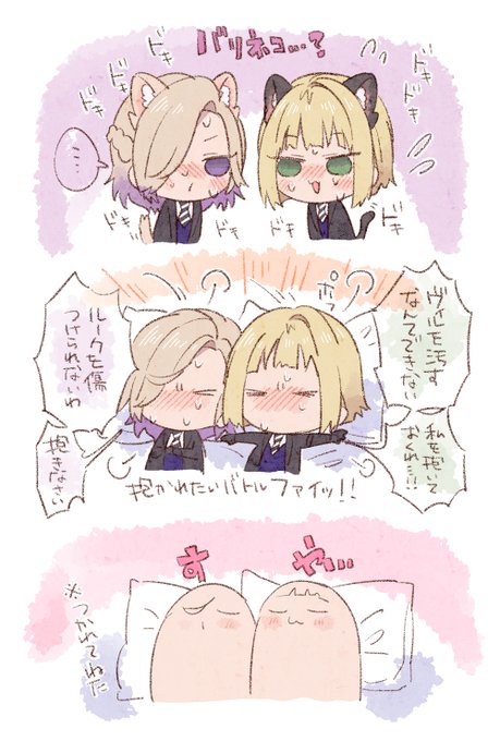 279 2099 #twst_BL ヴィルルク お互いの事を大切にしたくて下になりたい二人 わけの分からないバトルになるけどぎゃいぎゃいやってるうちに疲れて寝る健全なびるるく 20/08/28 01:47
