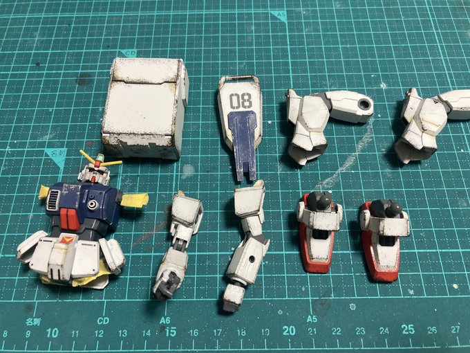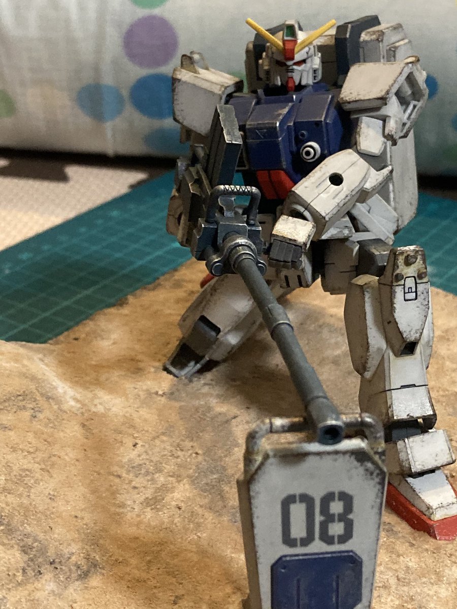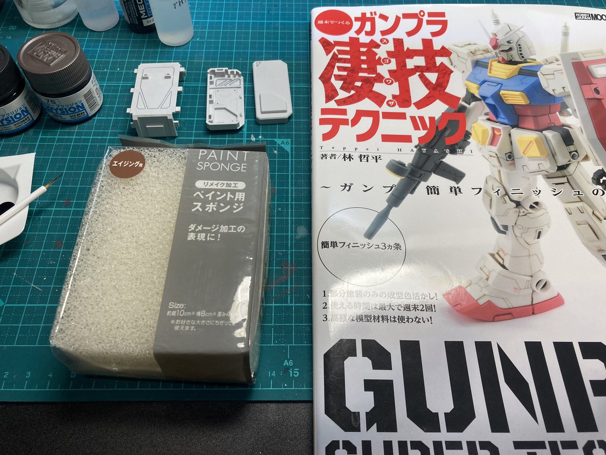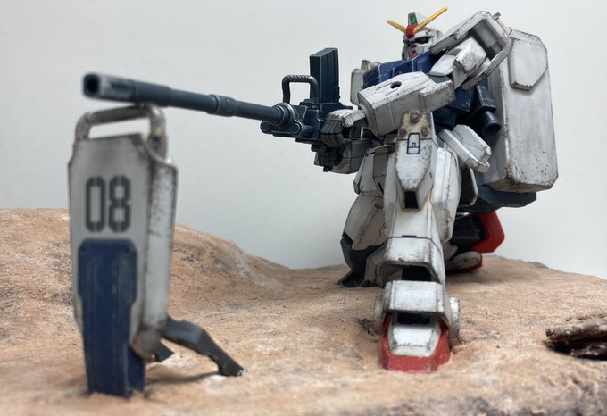 陸戦型ガンダムジオラマ製作中。 配置は決まったので次はガンダムの作業を進めます。 今回はスポンジチッピングとリアルタッチマーカーでウェザリングをしたいと思いますがやった事がないので参考書を見ながら進めますヾ(゚ω゚)ノ #ガンプラ好きと繋がりたい #ガンプラ凄技テクニック twitter.com/4numlthuidmzgm…
