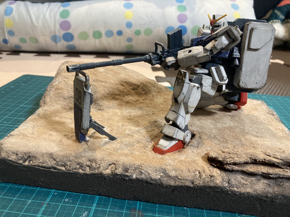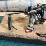 陸戦型ガンダムジオラマ製作中。 盾と砲身の位置をどうしようか考え中です、実際は盾はかなり手前に配置されてるようですがベースをの大きさに限界があるので盾に乗せてしまおうかな。 #ガンプラ好きと繋がりたい #輝き撃ち