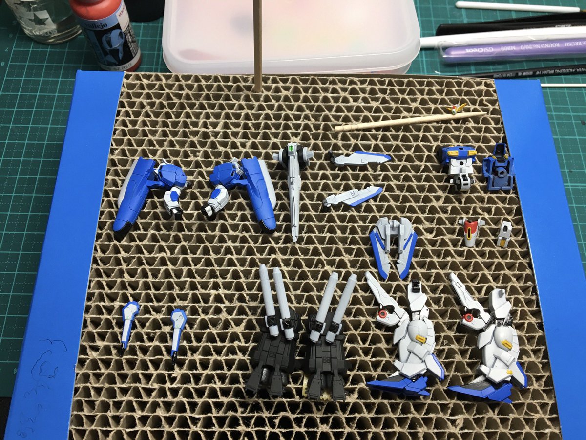 ビヨンドグローバル製作中。 今日はスミいれ前のグロスコートをかけてみます。 ポリウレタンバーニッシュをファレホシンナーで希釈すると白濁してくるんですがこれは大丈夫なのか?? #ガンプラ twitter.com/4numlthuidmzgm…