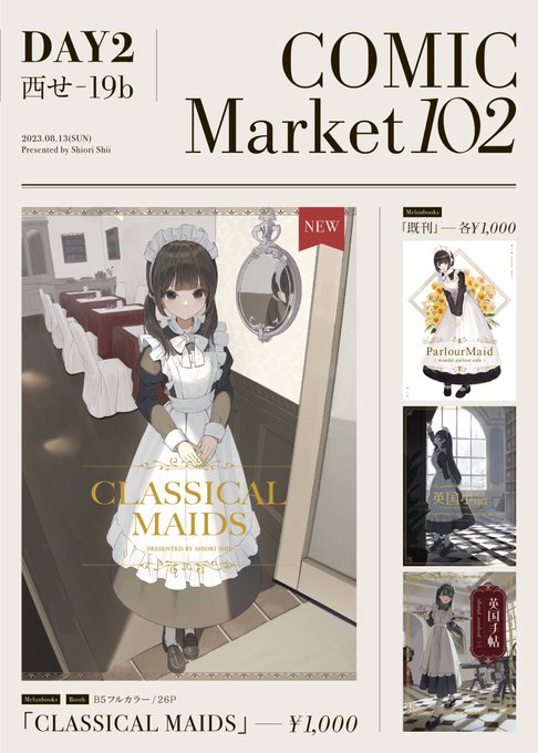 C102新刊「CLASSICAL MAIDS」と新作グッズの通販が開始しました! 本とグッズを一緒に買いたい方はBOOTHでお買い求め下さい☕ 🍈新刊 onl.bz/9iE7E66 🍎グッズなど shiori-shii.booth.pm