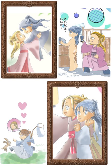 #イラスト #イラスト好きさんと繋がりたい おはようございます~🎵 今日も自分のペースで頑張りましょう😄💓💓 イラストは現代AUです😆 老「💒💐💝」 阿「😳😳😳前、簪もらったぞ?」 老「現代版でも、贈りたい!」 阿「😳😳😳💦」