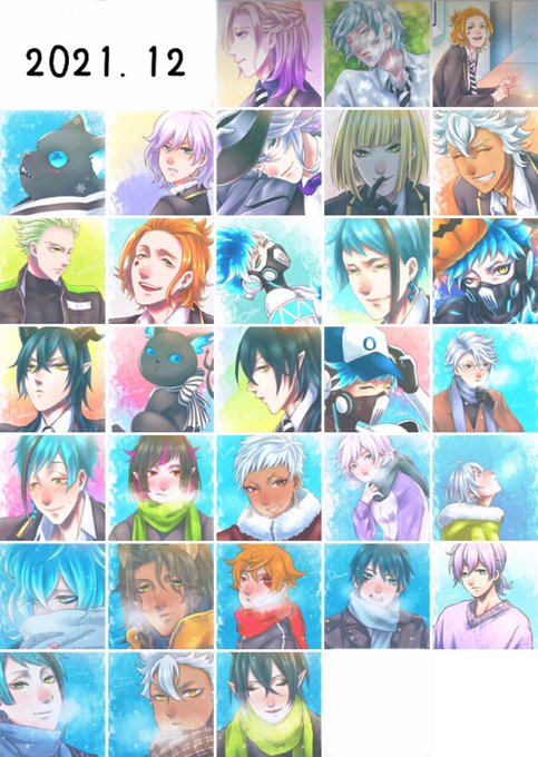 8 67 #今月描いた絵を晒そう 今月は寒すぎて後半みんなにマフラーさせてる🥶 21/12/31 18:41