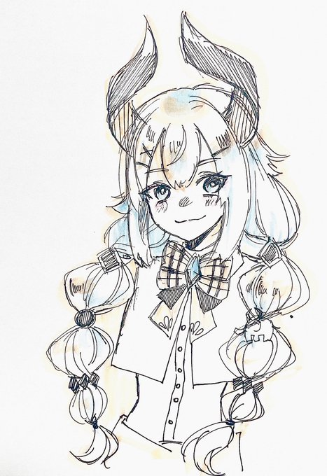 女の子の玉ねぎヘア好きでアナログで落書きしたレビちゃん🔲 手癖で描くと幼くなる #絵リファ