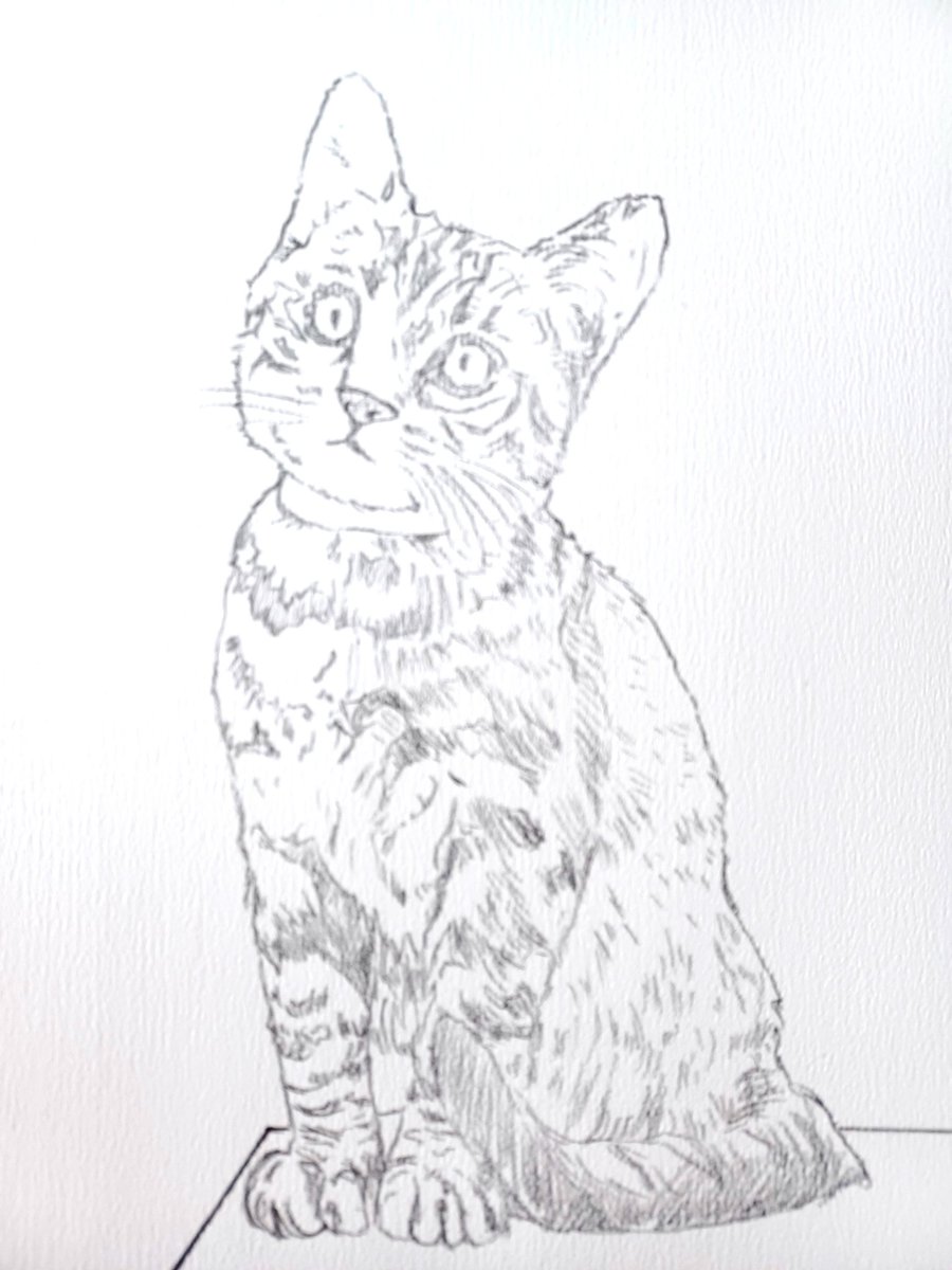 猫を描いてみました。 最近デジタルの技術が凄くてアプリとか使って、誰でも簡単にキレイで上手な絵を作成出来てしまいますね。 だからこそ、アナログで絵を描く事描ける事が大切な時代になってきてると個人的に思います。