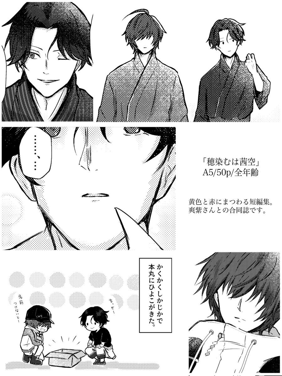 17 31 12/11 新刊「穂染むは茜風」 黄色と赤にまつわる短編集です! A5/50p/全年齢/800yen 爽紫(@soushi_s_s )さんとの合同誌で、リバーシブル表紙になっています。 私の方は黄色にまつわる3つのお話を描かせていただきました。 たゆのスペースロ57b「万能味噌ダレ」で頒布させていただきます! 22/12/07 00:43