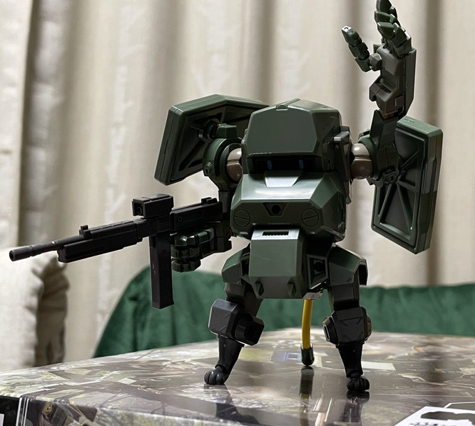 久々に再開しようと引っ張り出してきて持たせてみた。トリガーガード折れちゃった💦やっぱりちょっと大きいかなあ🤔でも子供が持つんだからこれくらいでもいいのか🤔 #デスクトップアーミー #オラザブ3バザー編