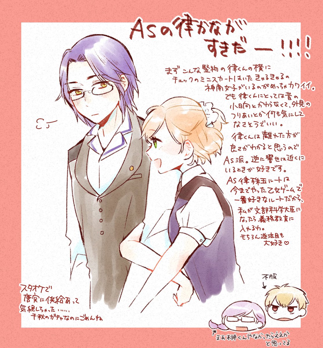 3 27 ネオロマの過去絵は何かにつけて流してる気がするけど、ンサーになる前にめちゃくちゃ描いてたGS絵は葬ったままだなと思って色々見てきたら結構面白かった 22/08/12 10:01