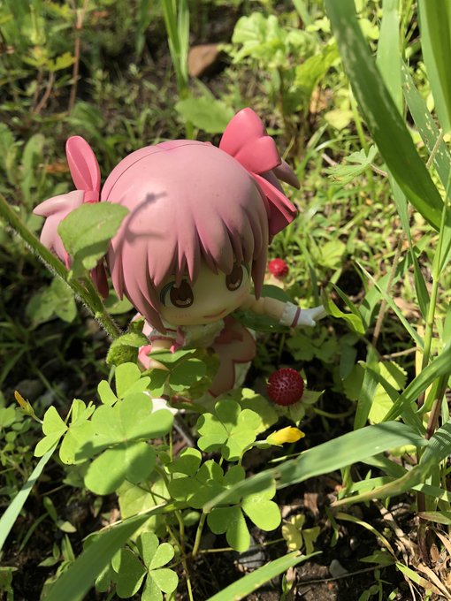 草を掻き分けヘビいちごをみつけたか。 #キューポッシュ