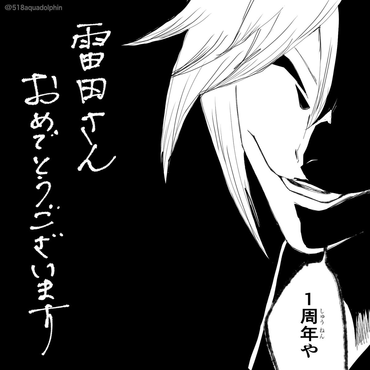 雷田さん1周年おめでとうございます!! 時間がなくて急いで描いたので今度ちゃんと描き直します! 雷田さんの未来に卍解! #雷田ァート