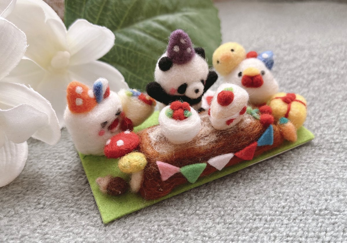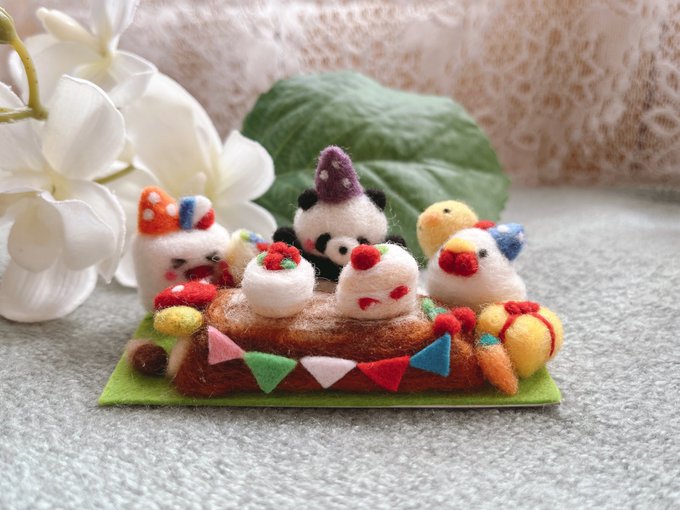 羊毛フェルトで作っています 『パーティ』完成しました♪ #羊毛フェルト #パンダ