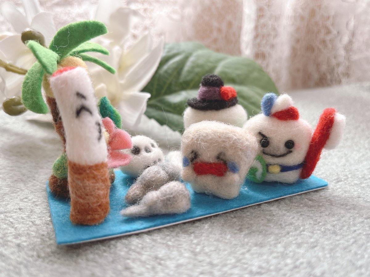 暑すぎて作業が思う様に進まない日々が続いております🍉今、昔作ったものを小型化してデザインをリメイク中✐可愛いくなあれ! #羊毛フェルト