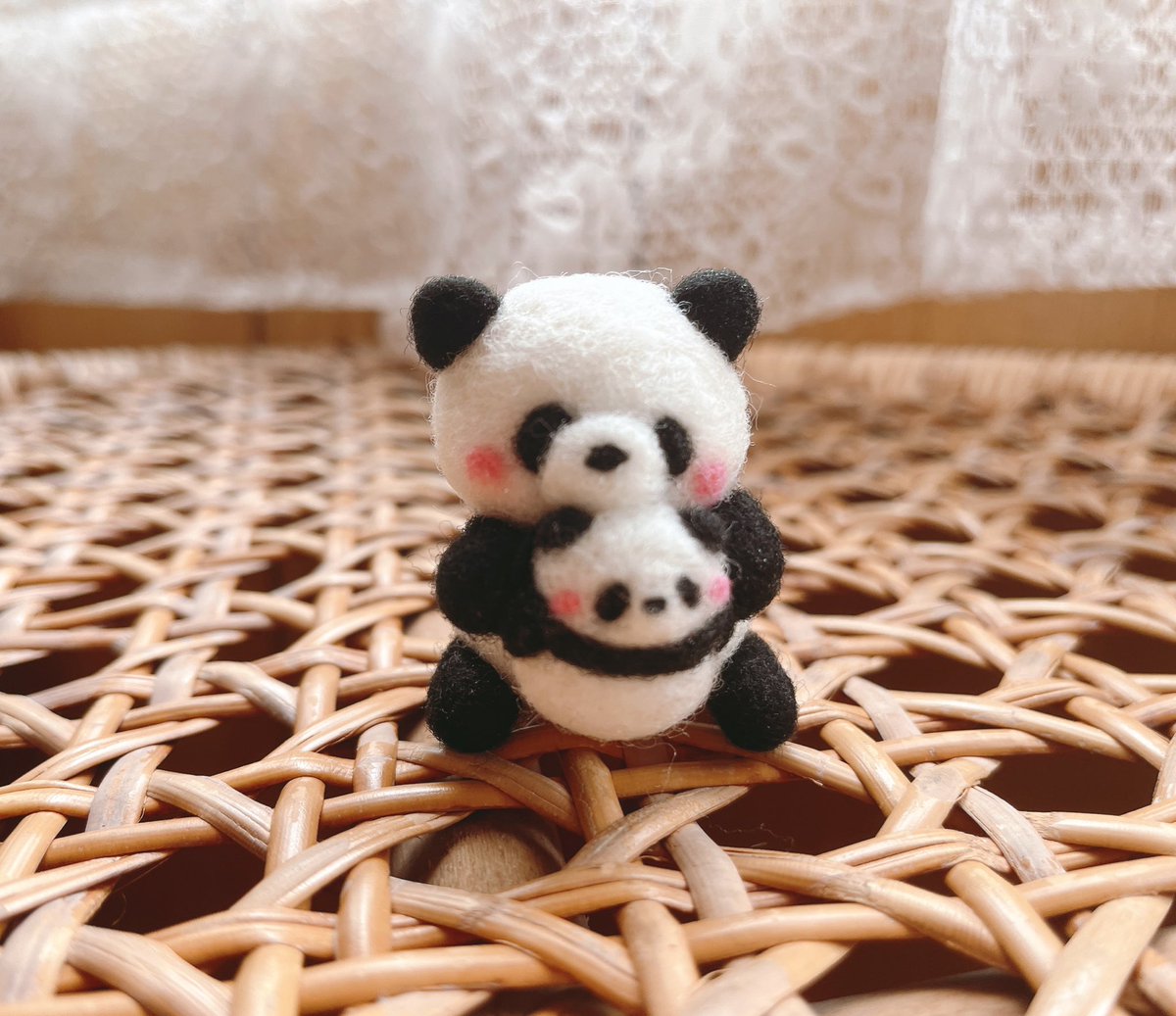 羊毛フェルト作ってます 『パンダとパンダ』 有難いことにお嫁に行きました🌷 #羊毛フェルト