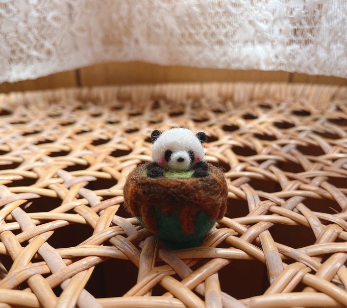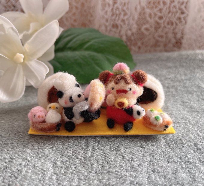 0 3 羊毛フェルト作ってます 『パンダとパンダ』 有難いことにお嫁に行きました🌷 #羊毛フェルト 23/04/20 12:03