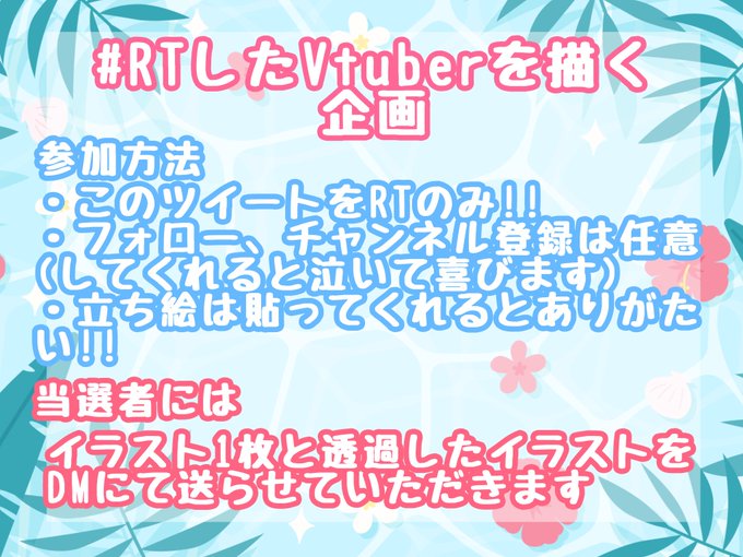 【イラスト企画】 色んなVさんと仲良くしたい!!お友達になりたい!!!!🥺 良かったらお気軽にご応募ください✨ ⟬当選数⟭ 1~3人(増えるかもしれない!!) ⟬応募期間⟭ 7月29日18時まで(中途半端でごめんよ💦) ⟬お渡し期間⟭ 8月14日まで #RTしたVtuberを描く #イラスト企画 #Vtuber