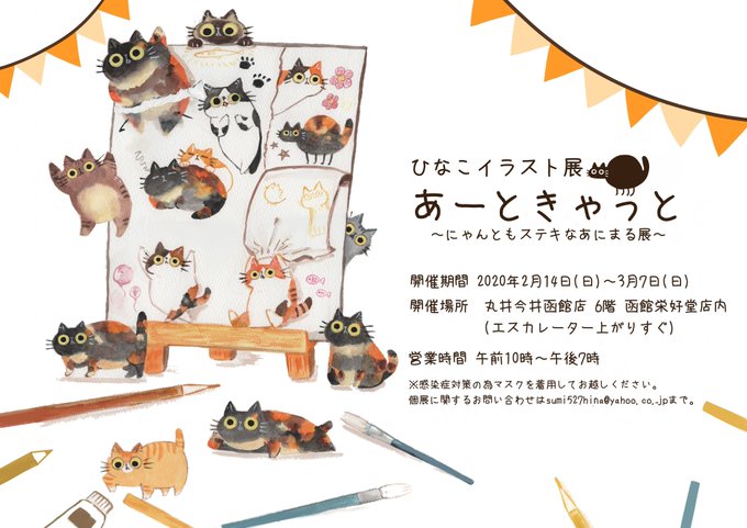 17 45 【イラスト展開催中!】 開催期間 2021年2月14日(日)~3月7日(日) 開催場所 丸井今井函館店函館栄好堂店内 エレベーター上がりすぐ 皆様のタイミングでこれる方はぜひ!物販もあります! 21/02/17 10:49